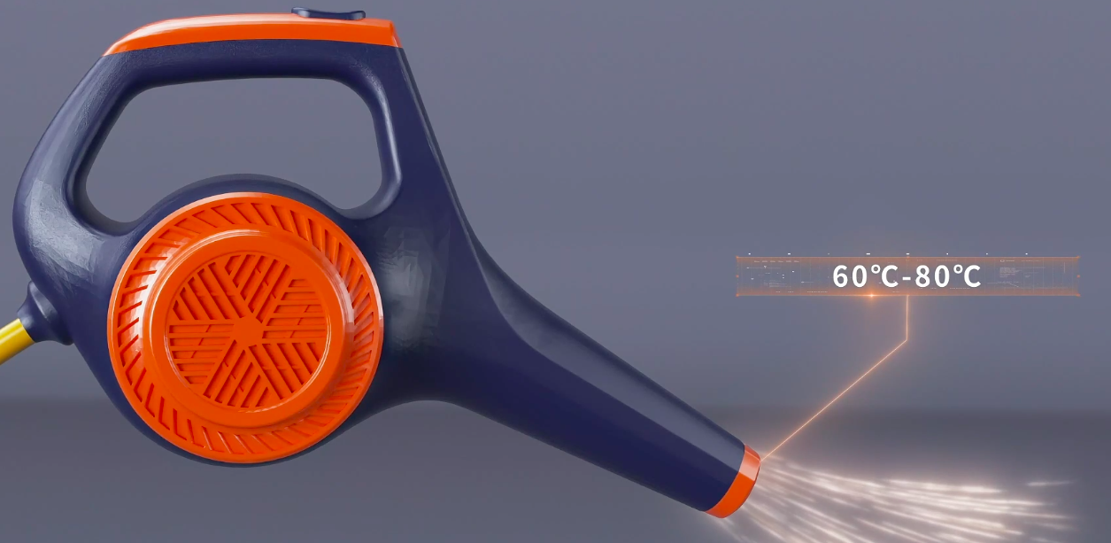 风枪的出风口能够在低温环境中保持60℃到80℃。外壳采用耐低温、抗高温、耐腐蚀、抗氧化的工程塑料材质。